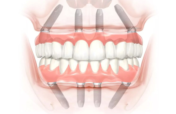 Reabilitação fixa sobre implantes que devolve o sorriso completo no mesmo dia. Ideal para quem usa dentadura ou perdeu vários dentes.